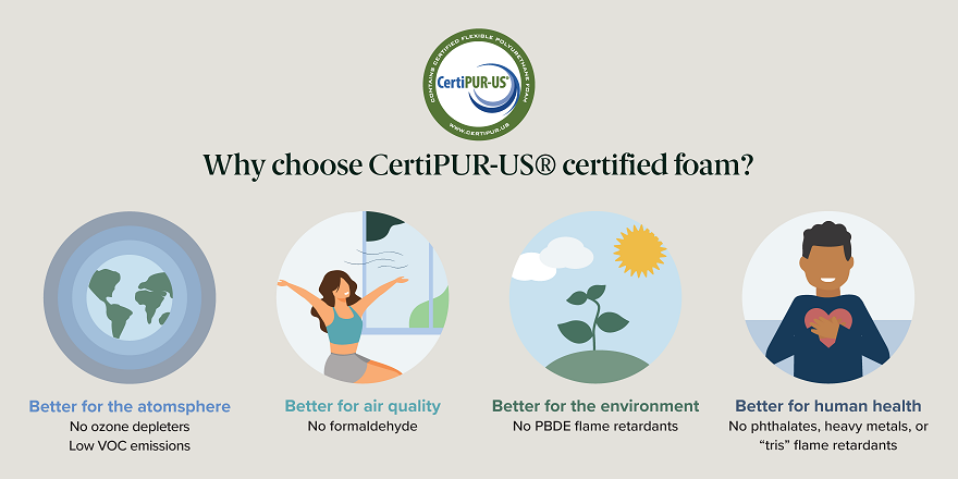 CERTIPUR-US CERTIFIED – All foam meets strict standards for durability, performance, emissions and environmental stewardship