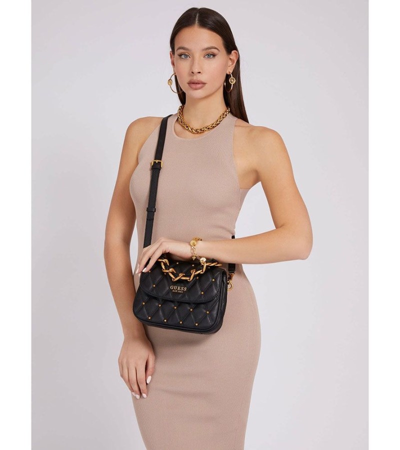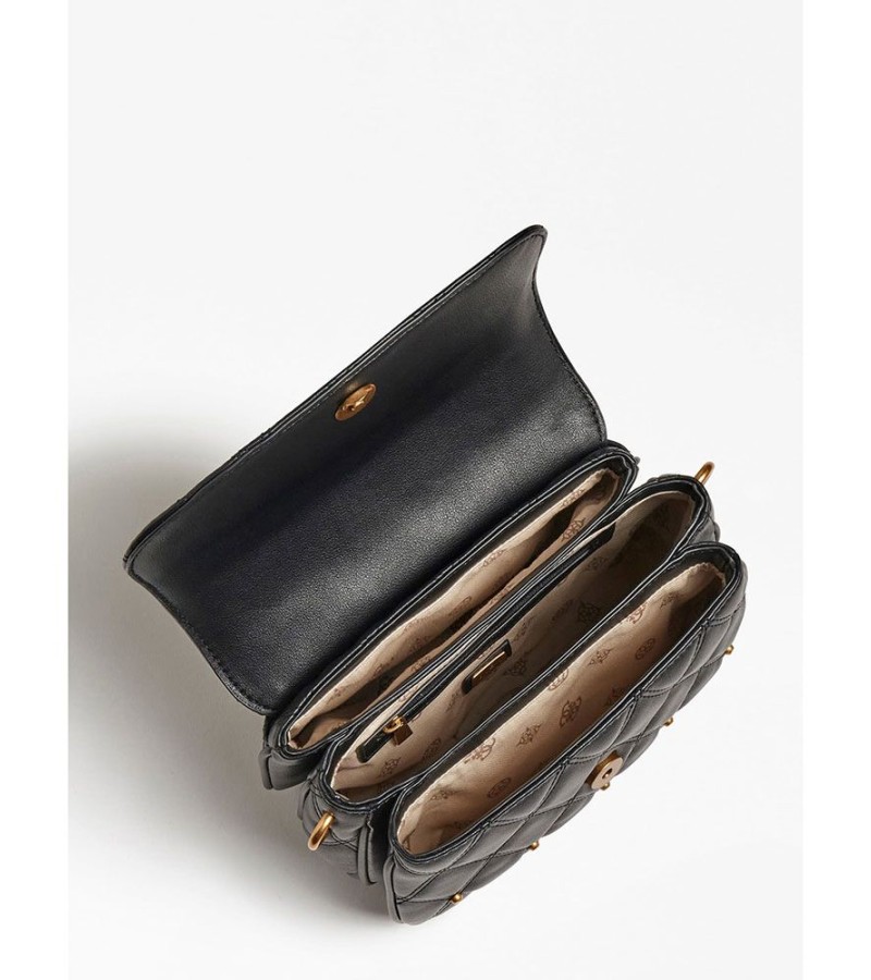 Elegant Quilt designed handbag . Top handle. Multiple compartments. Guess name Logo. Comes with charms and embelishments to make it look extremely attractive. Perfect to be carried at work & parties.