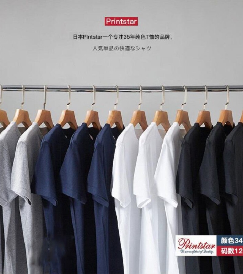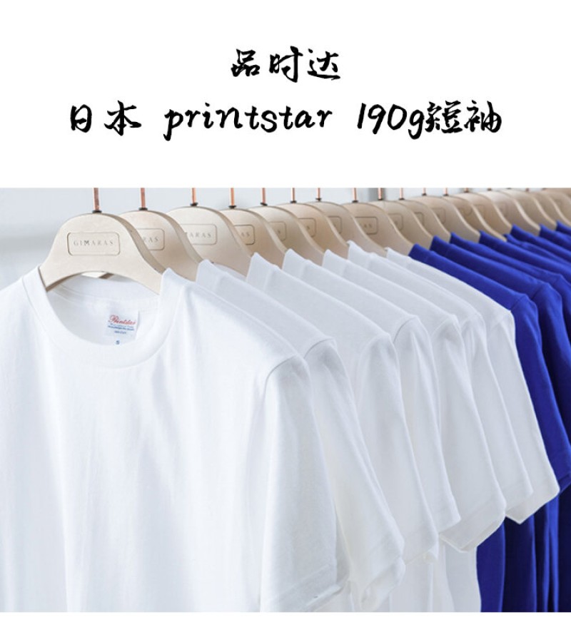 190G Printstar纯棉黑白短袖T恤男女半袖纯色圆领T恤基础款