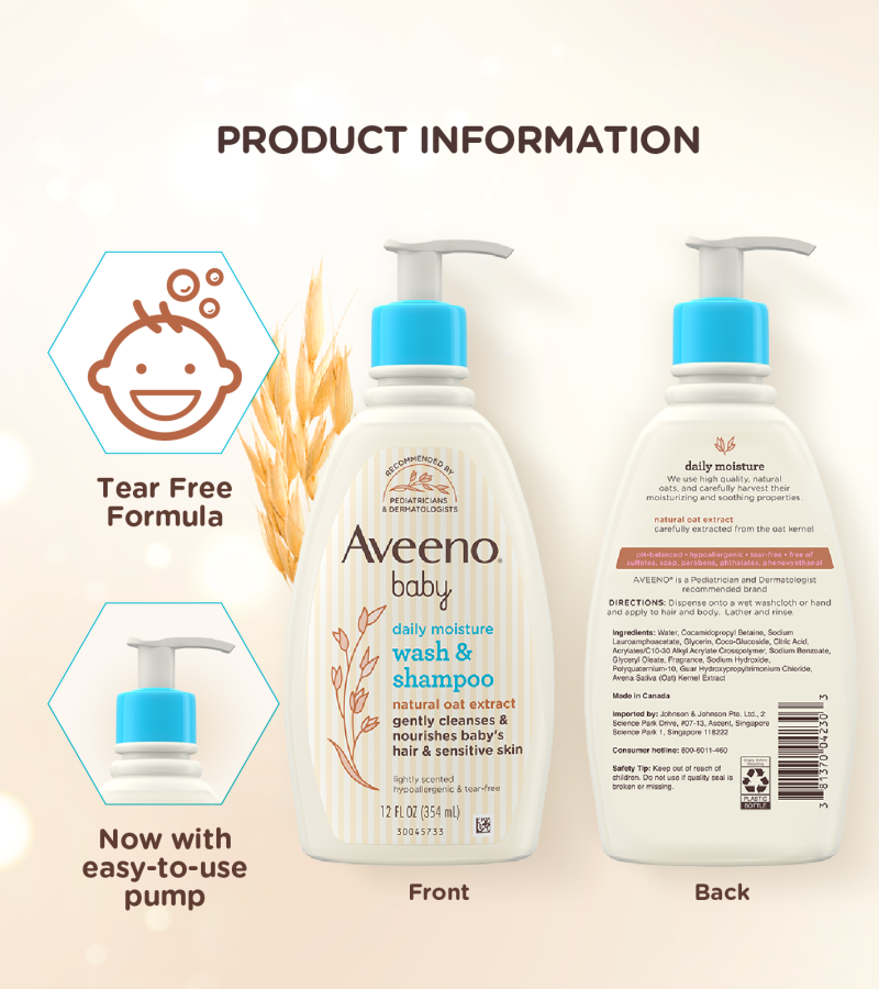 All the clean your baby needs in one gentle formula. Made for babies with sensitive skin, this baby wash and shampoo cleanses without drying. AVEENO® Baby Wash & Shampoo contains natural oat extract, known for its soothing and nourishing properties. And the rich lather rinses clean, leaving a light, fresh fragrance.