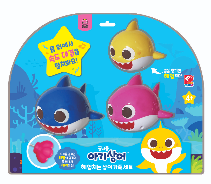 [Pinkfong]游泳婴儿鲨鱼沐浴玩具●上发条玩具●婴儿鲨鱼家庭沐浴玩具●水上游乐水上玩具在水中游泳不需要电池