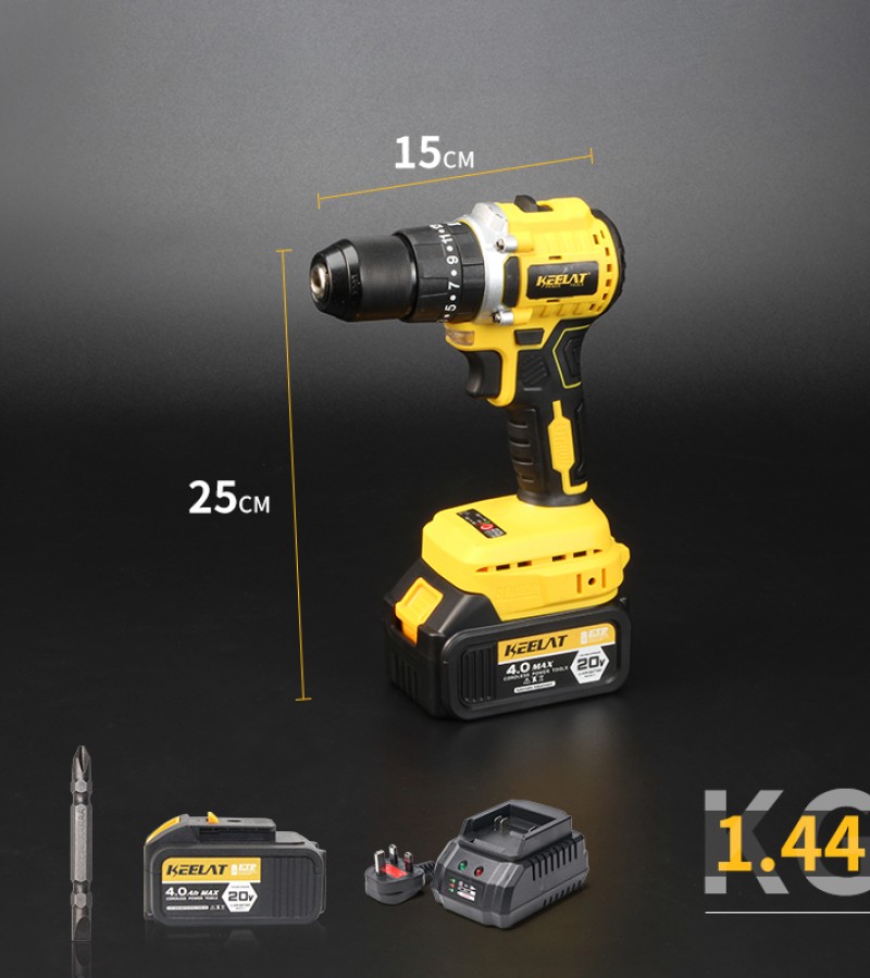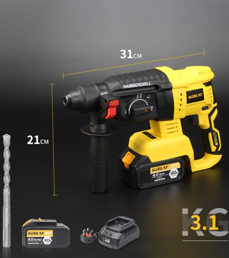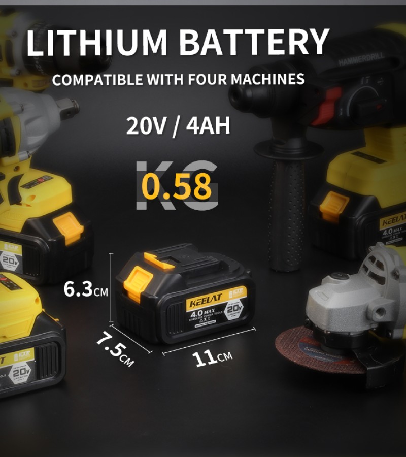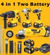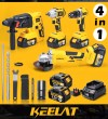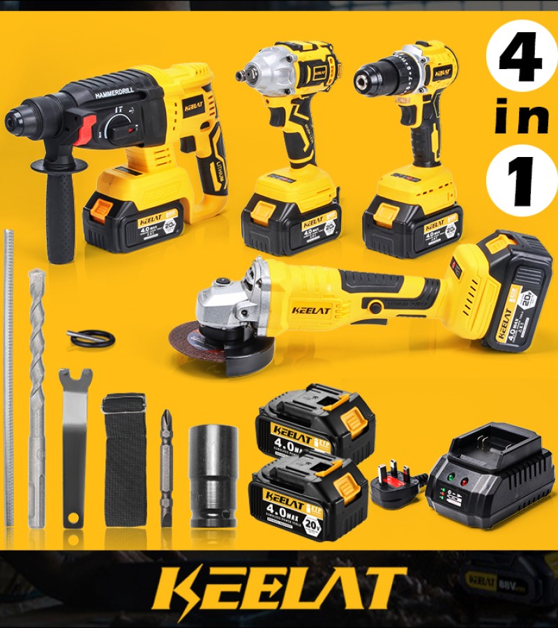 KEELAT 4-in-1 Brushless Cordless Impact Wrench Impact Drill Rotary Hammer Drill Angle Grinder Same Battery One Box Tool Set with 20V 4.0Ah Li-ion Battery