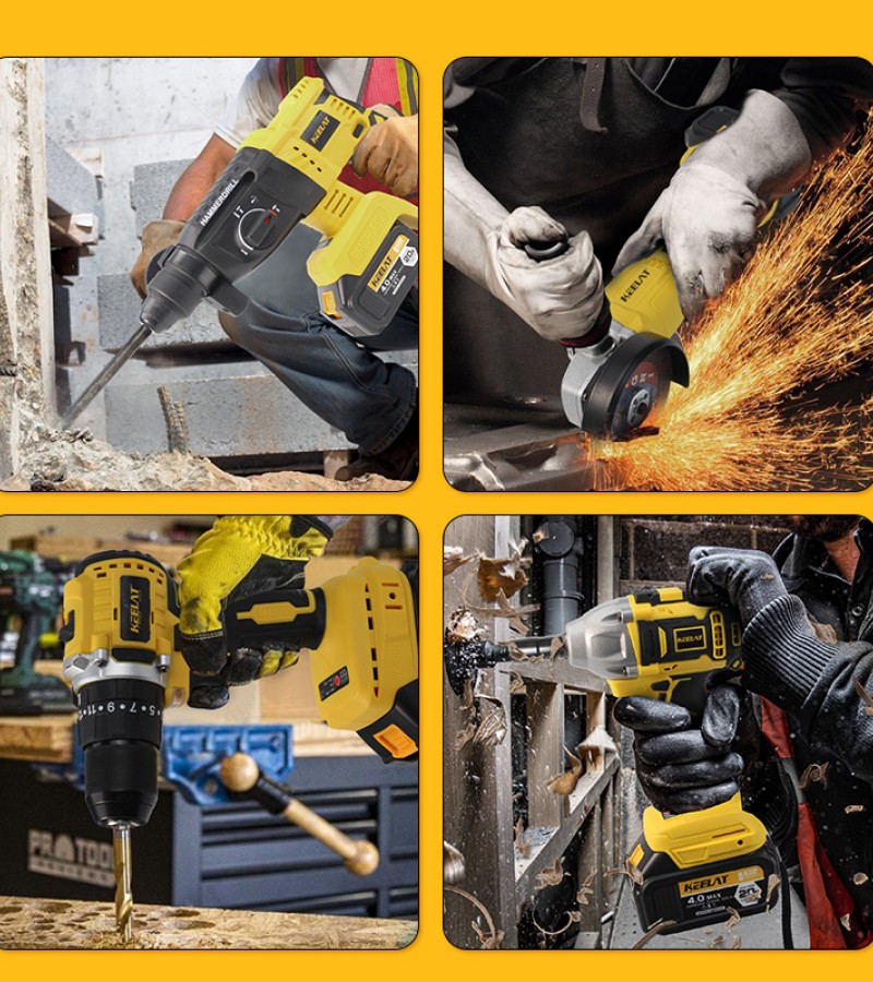 Multi-functional suit combination in one box which including Electric Wrench/Electric Drill/Electric Rotary Hammer/Angle Grinder,work together to make efficiency faster.
