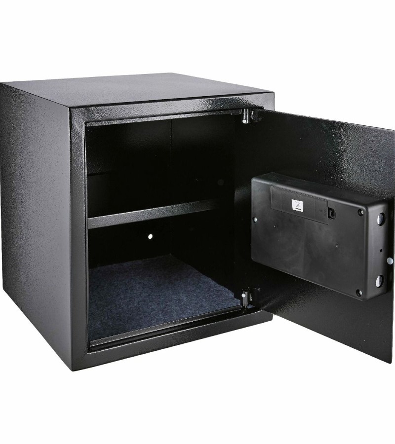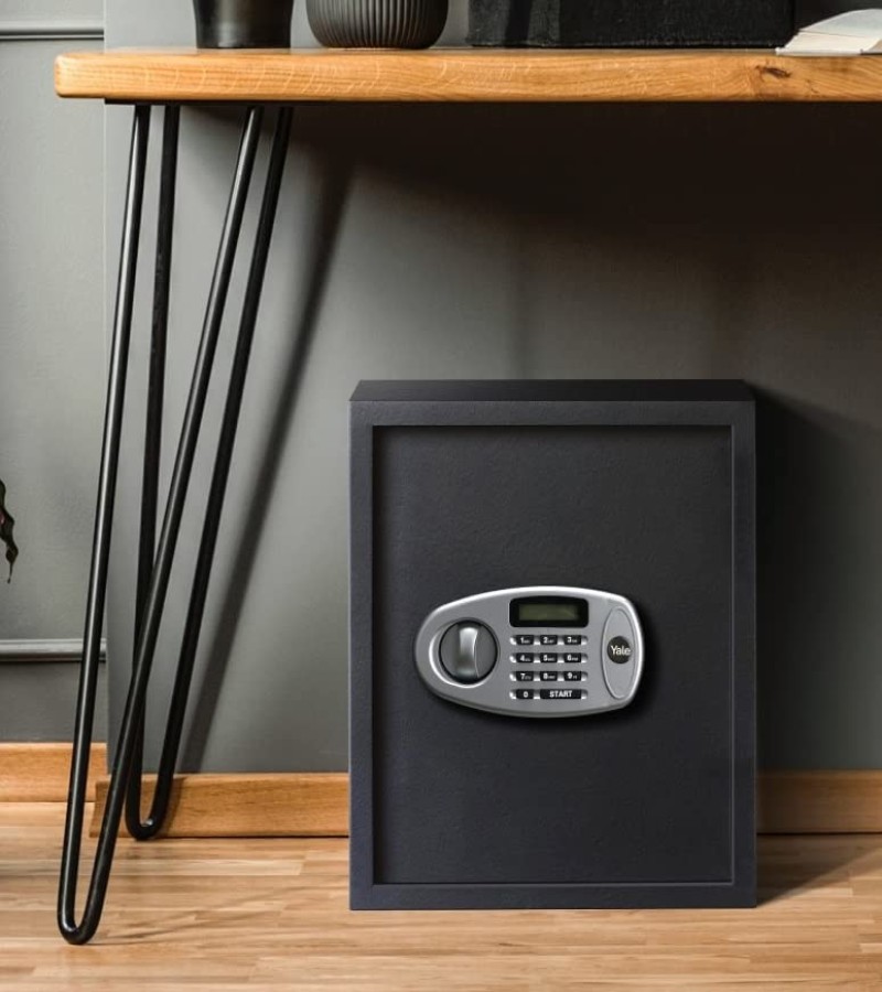Bring the Yale 41 Litres Digital Safety Locker which helps in protecting the things that matter the most to you. Equipped with 41 litres capacity, it will keep your most important belongings secured. Designed with a strong steel body and 16 mm secure bolts and with a pin code, you are able to gain quick access to your safe. Also, the steel construction with carpeted floor helps to protect against scratches and damages. The Yale 41 Litres Digital Safety Locker nicely accommodates a wide range of items, including legal documents, passports, jewellery, cash, and more. Whether that’s your camera to capture those special moments or a sentimental belonging, this can be the ideal locker you are searching for. The Yale 41 Litres Digital Safety Locker is convenient to operate having a digital keypad with LCD display and a programmable combination of 3 to 8 digits. The electronic lock and digital pin access offer quick set-up and easy operation. Inputting the incorrect code 4 times sounds an internal alarm for 3 minutes and locks out the code pad for that time. It uses 4 AA size batteries (1.5 Volt). In case of battery failure, the safe can be operated with a manual override function with 2 security override keys supplied. It comes with pre-drilled holes (fixing bolts supplied) which allows permanent mounting to floors, walls, or most hard surfaces for additional security.
