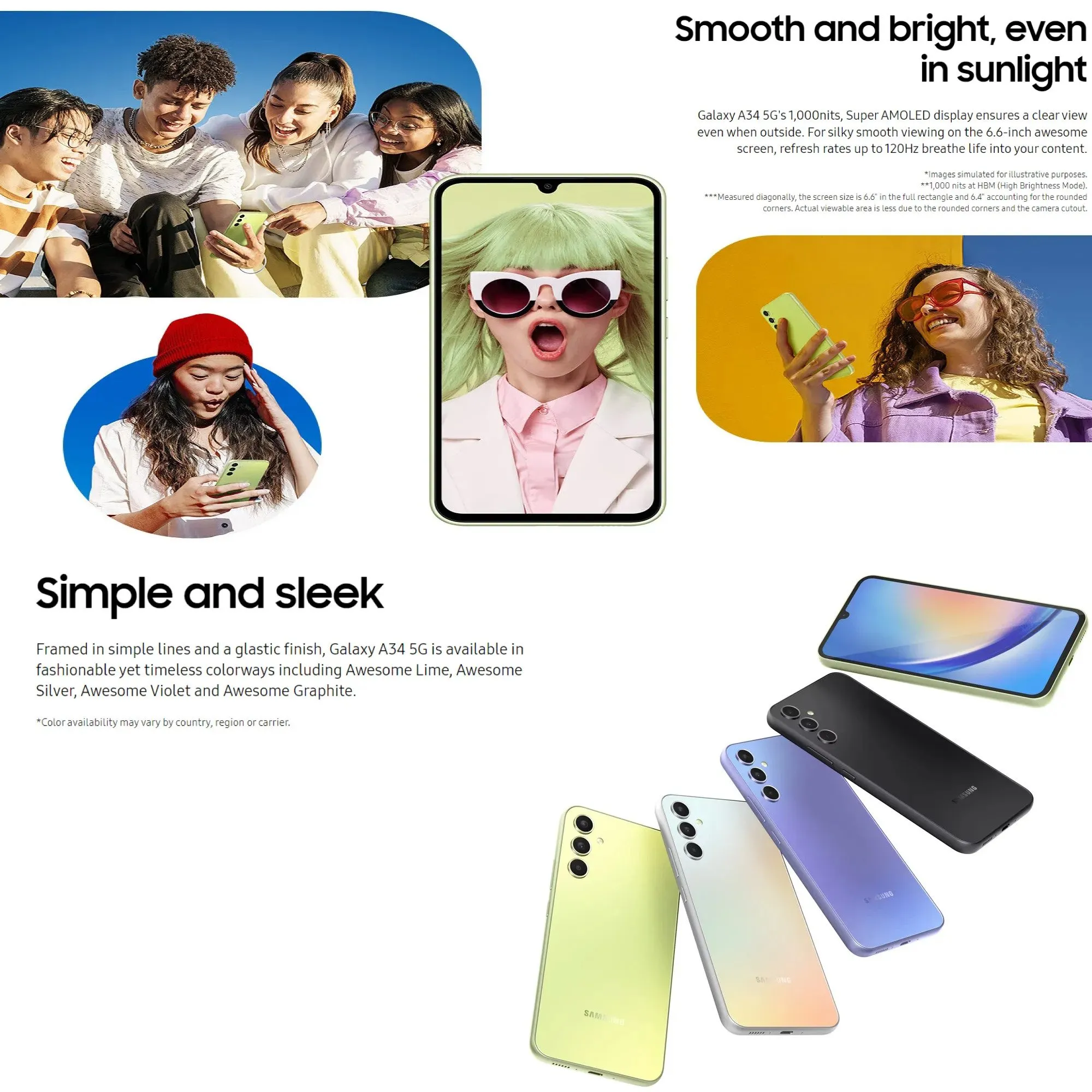 Samsung Galaxy A34 5G 128GB | 1 Year Official Warranty Samsung Singapore | A Series 2023