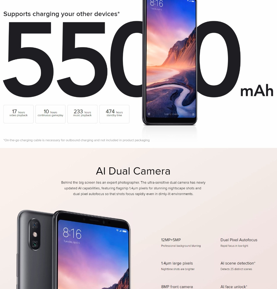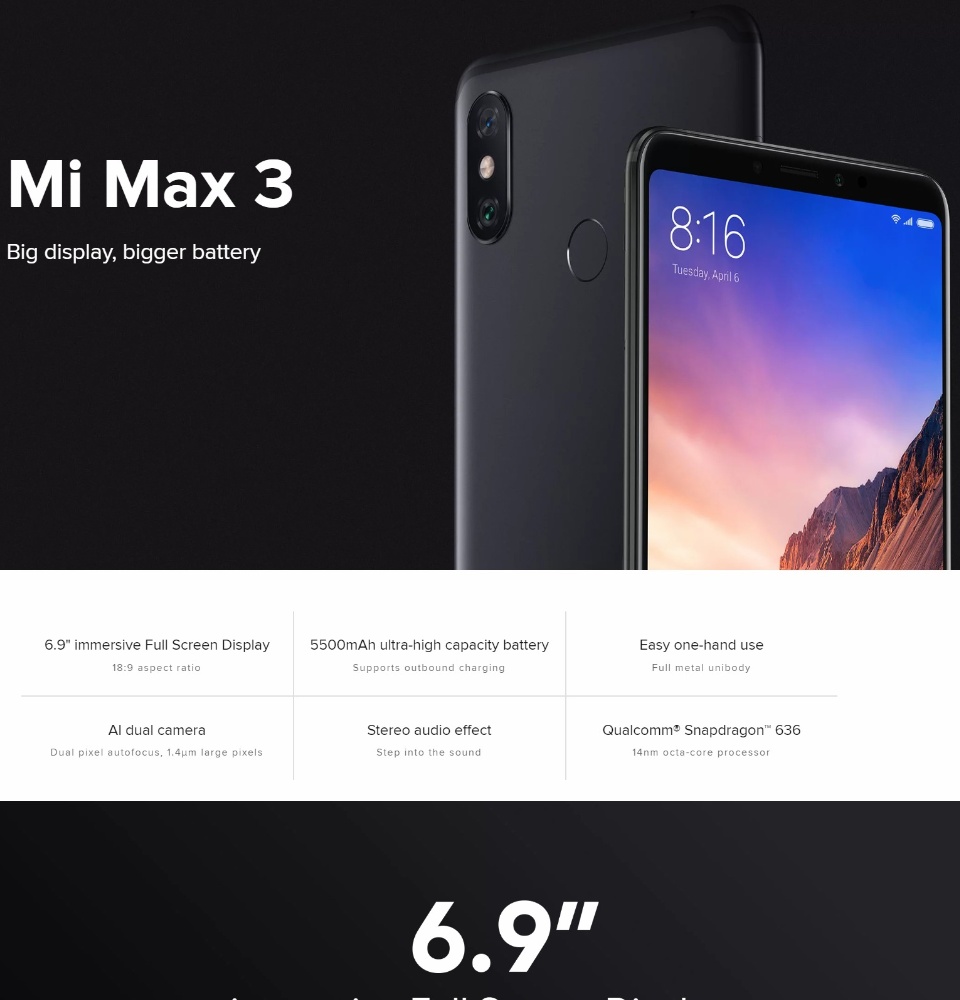 Xiaomi Mi Max 3 // 64GB ROM 4GB RAM / 6.9inches / 5500mAh Battery / AI face unlock / Export set (SG WARRANTY)