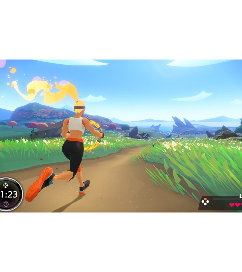 Traverse grass-swept plains by jogging in place, attack enemies with overhead shoulder presses, and refill your health meter by striking some yoga poses. Two new accessories, the Ring-Con™ and Leg Strap, measure your real-world actions and help turn them into in-game movements. With additional minigames and customizable workout routines, Ring Fit Adventure is great escape for players of all skill levels and schedules.In Adventure mode, defeat enemies with attacks based on real-world exercises as you traverse more than 100 levels in over 20 worlds. As you work through each level (and possibly work up a sweat), you’ll earn experience points. Between fights, you may encounter some unusual methods of transportation such as squat-powered launch pads. Then, pass around the Ring-Con and leg strap accessories and select from a few minigames: break boxes with gusts of air, craft pottery using squats, and more.