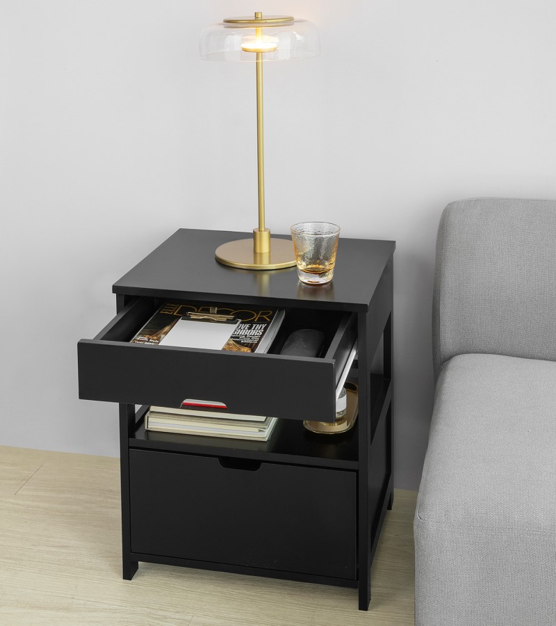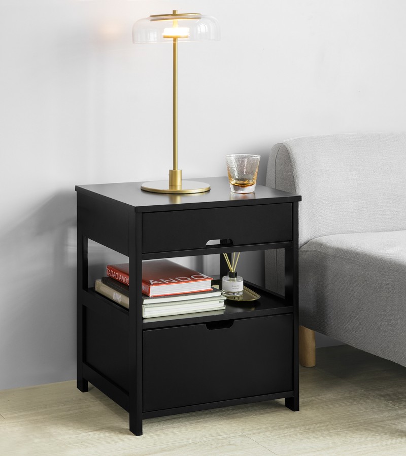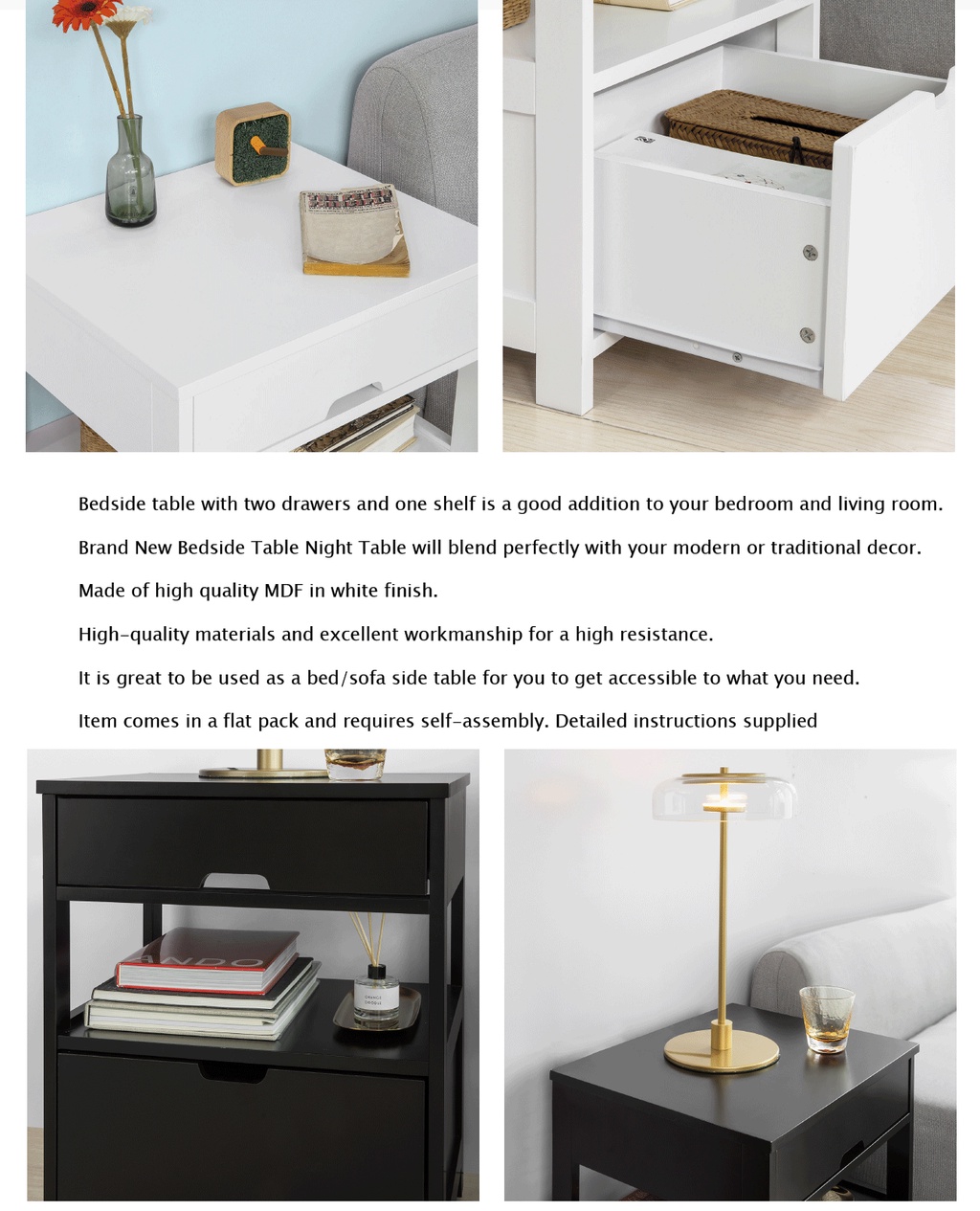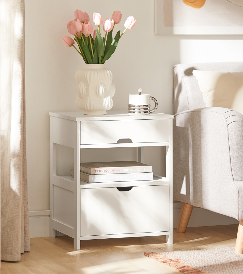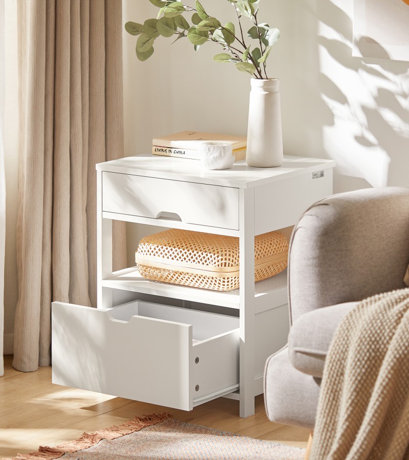 (SG STOCK)SoBuy® FRG258-W /SCH Home Wood Beside Table, Side Table, End Table with 2 Drawers,White,Black