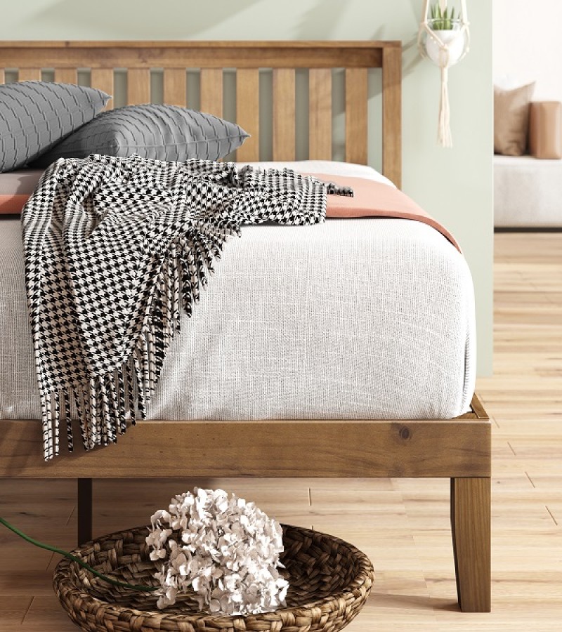 Beautiful natural wood details, a stylish headboard, and a solidly built frame make this bedframe the perfect bed to rest on. Whether you’re going for a farmhouse aesthetic or a more modern feel, Zinus Wood Platform Bed adds charm to any bedroom.