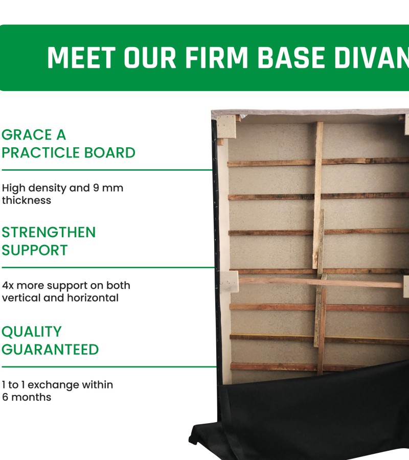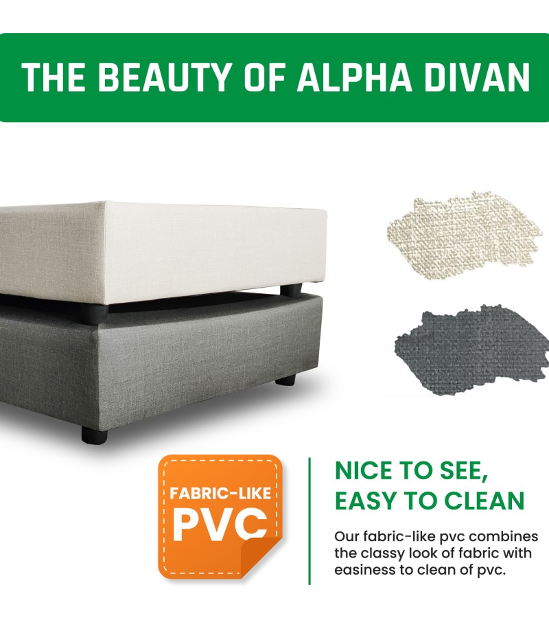 ALPHA Divan, Fabric-Like PVC, Easy to Clean Firm Base, Available Sizes (King, Queen, Super Single, Single)