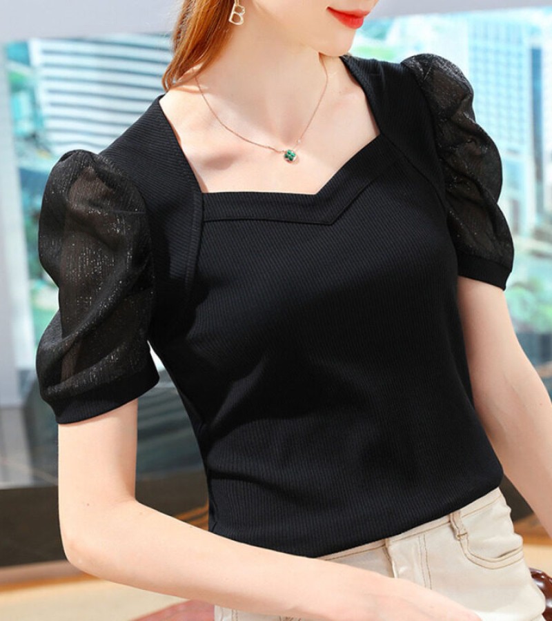 Name: Women Ice Silk Puff Short Sleeve Shirt