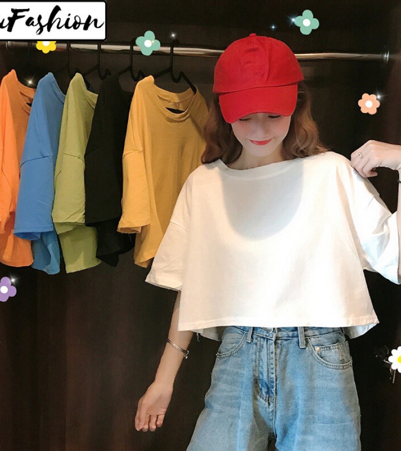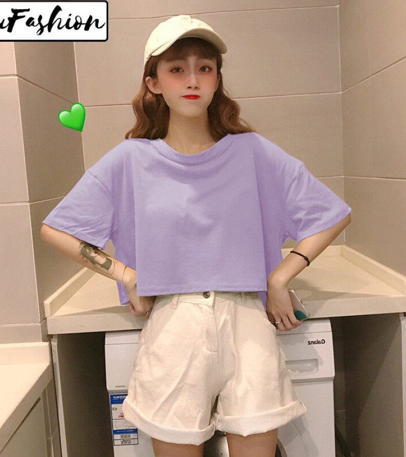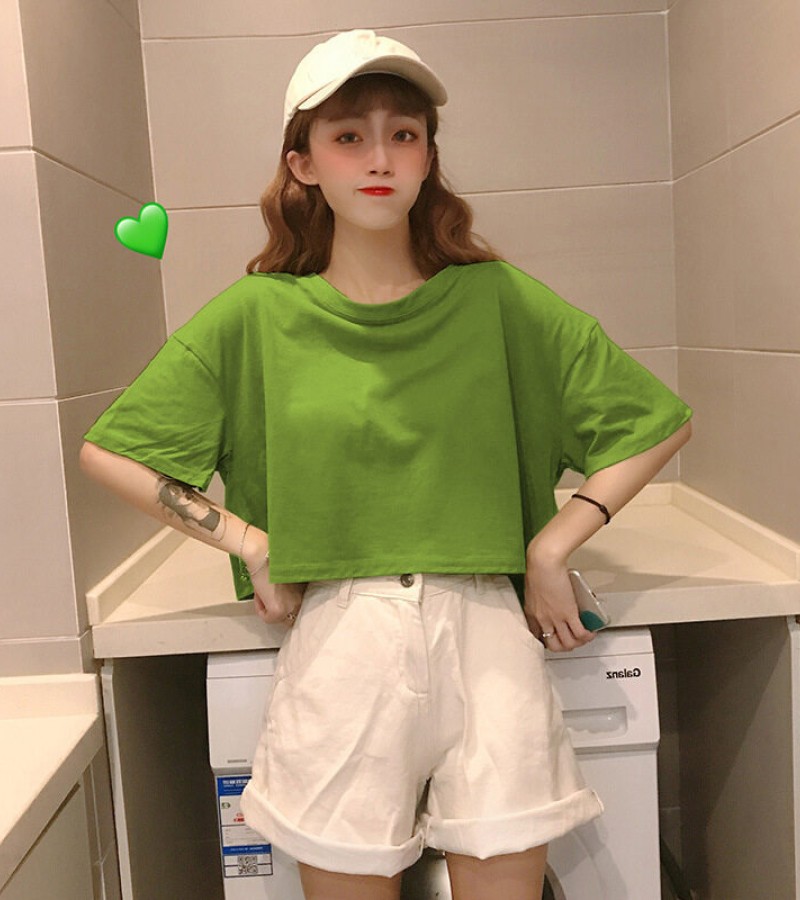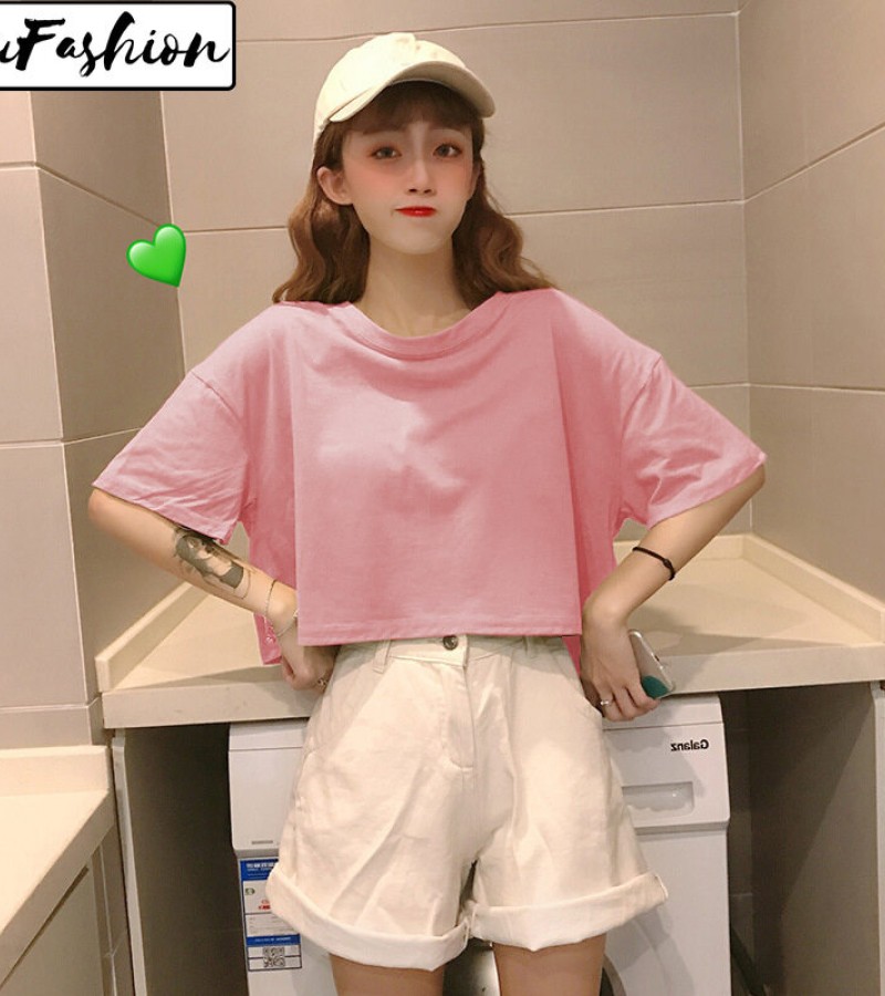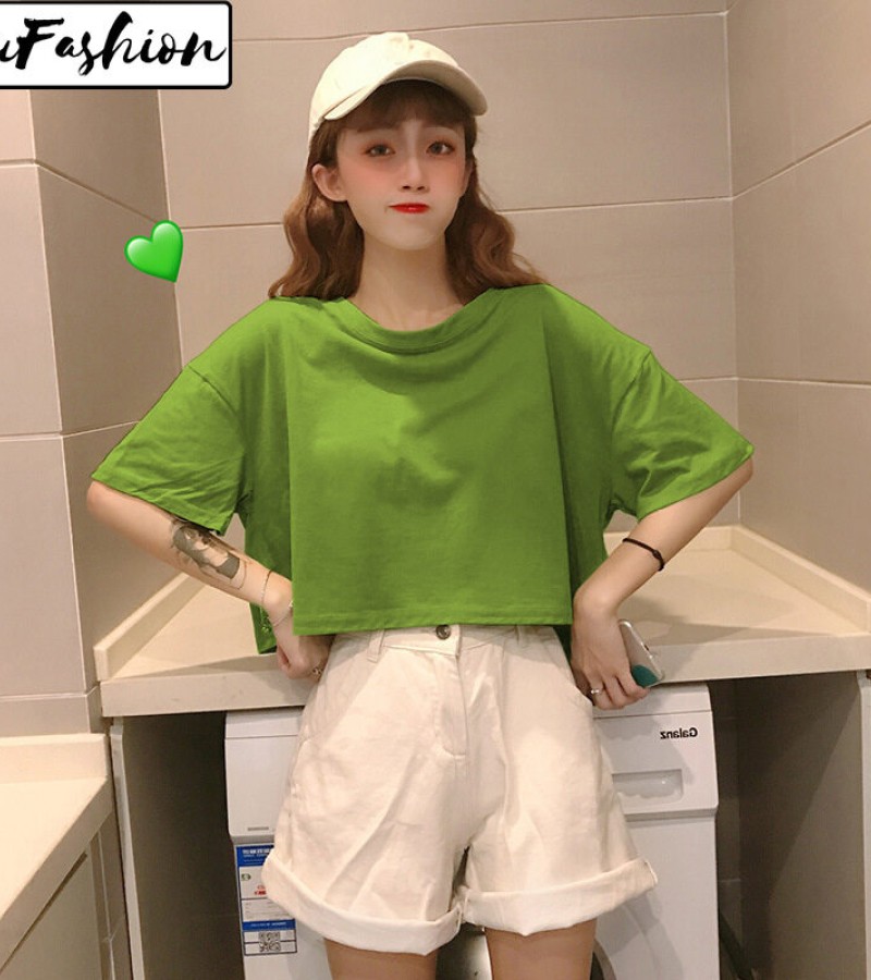 LuFashion Crop Tops for Women Summer Candy Colors Short Sleeve Plain Casual T-Shirts