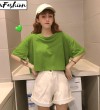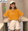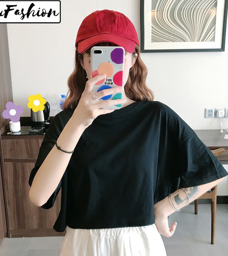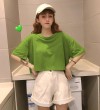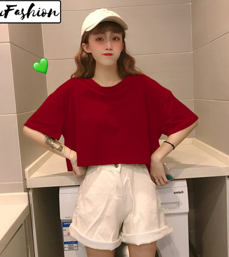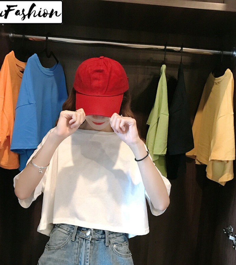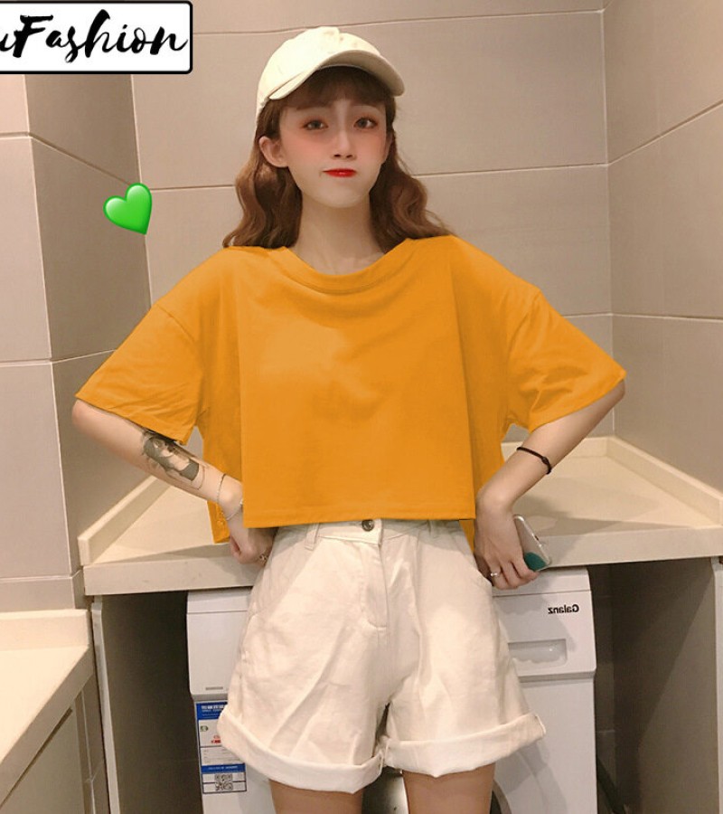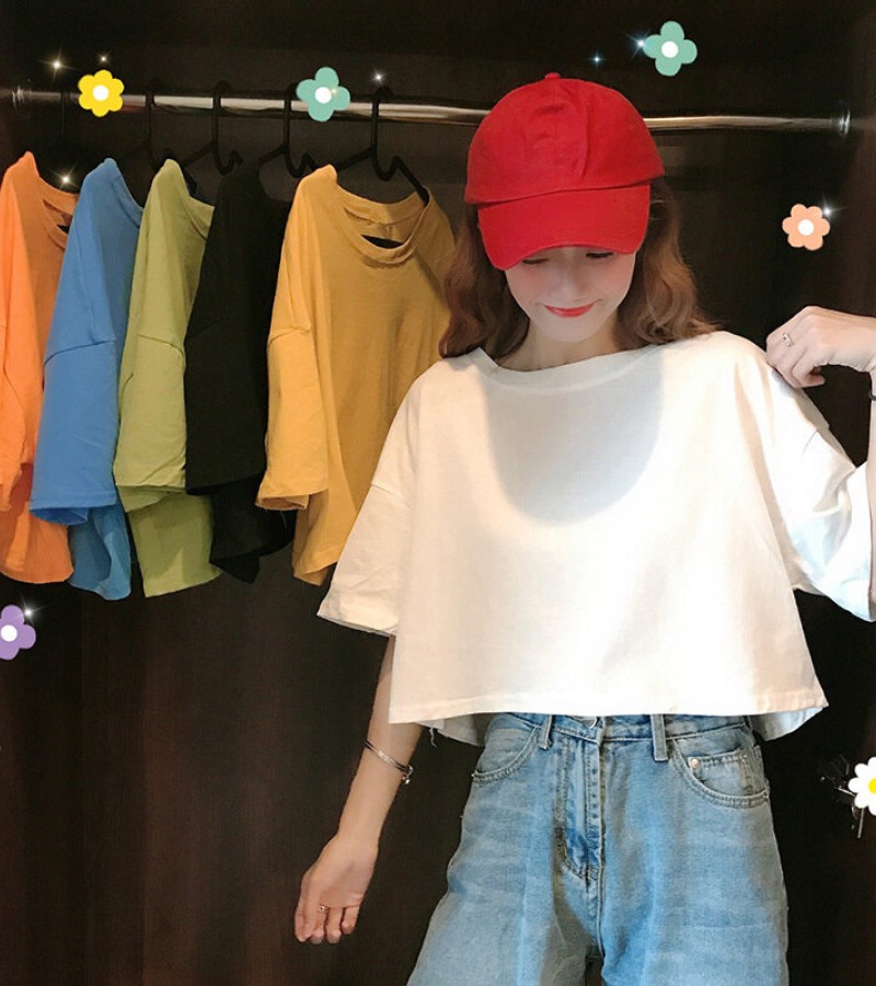 LuFashion Crop Tops for Women Summer Candy Colors Short Sleeve Plain Casual T-Shirts