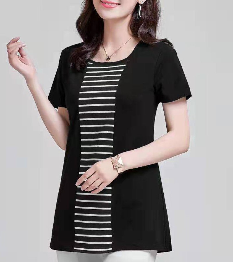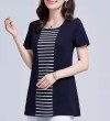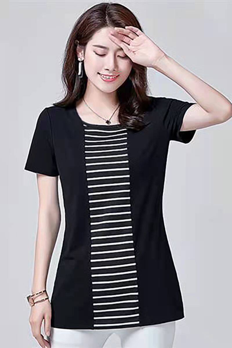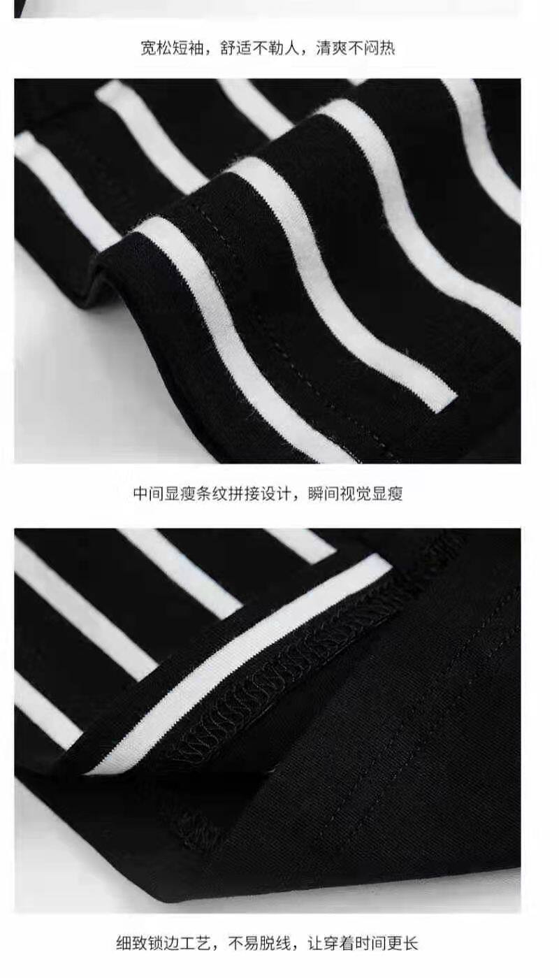 100KG胖女可穿2022新款韩式条纹长袖T恤女式短袖加大码盖腹圆领时尚T恤连衣裙优雅衬衫女式T恤