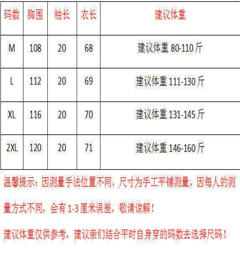 XXL: Length (71cm); Bust (120cm); Sleeve (20cm); Recommended Weight (73-80Kg);