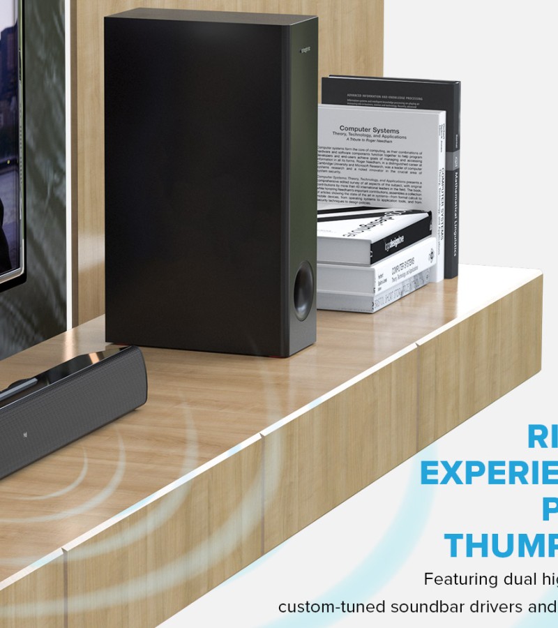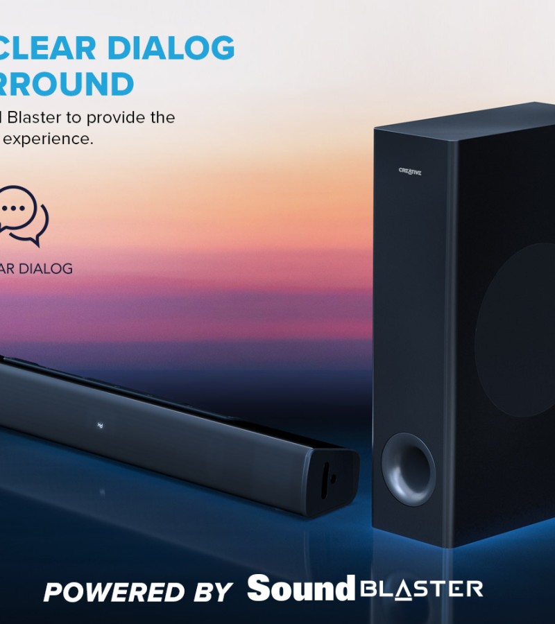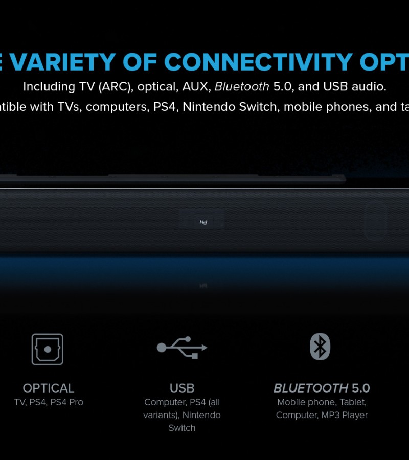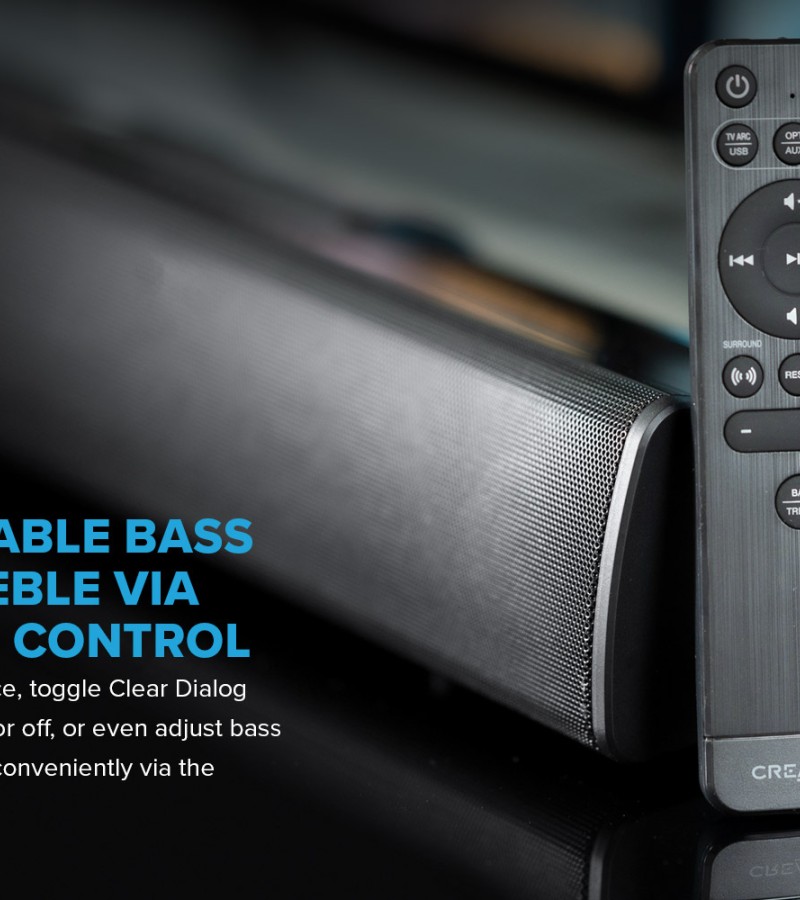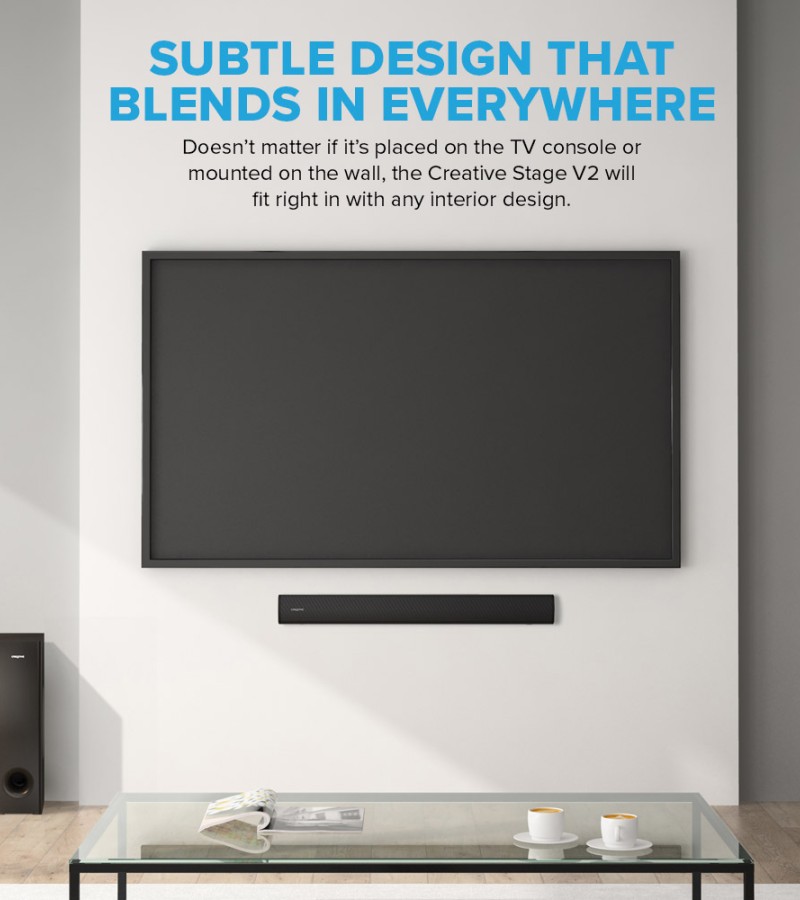 Creative Stage V2 - 2.1 Soundbar with Subwoofer, Clear Dialog and Surround by Sound Blaster, Bluetooth 5.0, TV ARC, Optical, and USB Audio, Wall Mountable, Adjustable Bass and Treble, for TV
